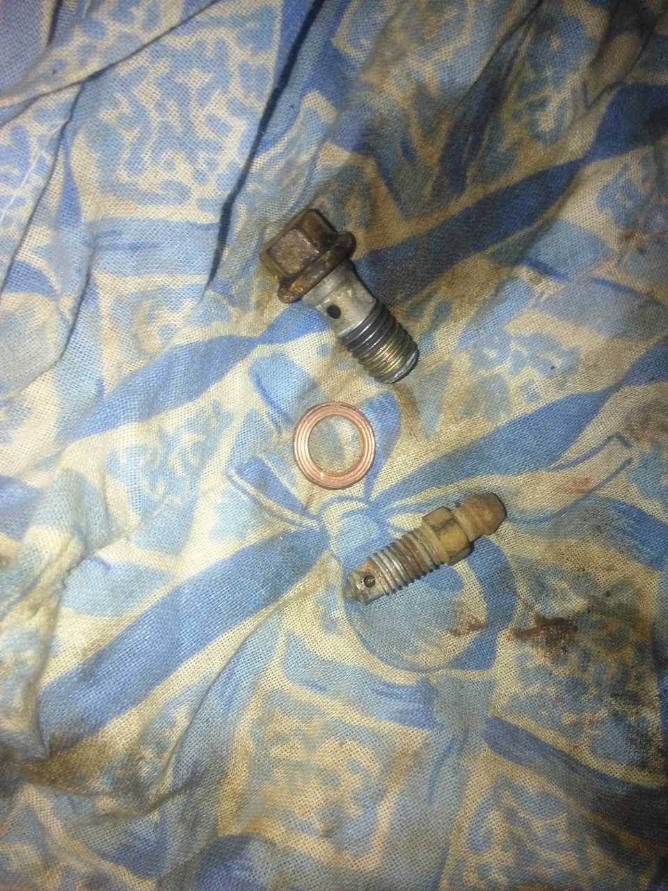 Обязательно промываем штуцер прокачки, прокладки и болт. Очищаем соединяемые поверхности.