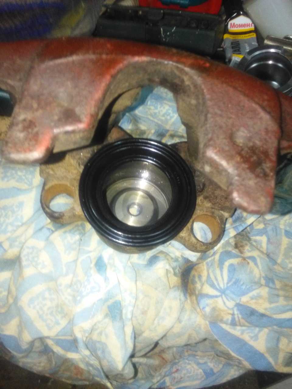 Но запихать поршень так чтоб пыльник не вылетел из своего места в суппорте — задача не из легких. Немного шпили-вили и все встает на место.